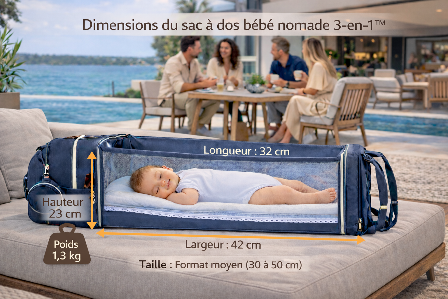 Oui. Compact et pratique, il est idéal pour les déplacements, les voyages ou les sorties en famille. Il permet de garder toutes les affaires de bébé organisées tout en offrant une solution confortable pour transporter l’enfant.