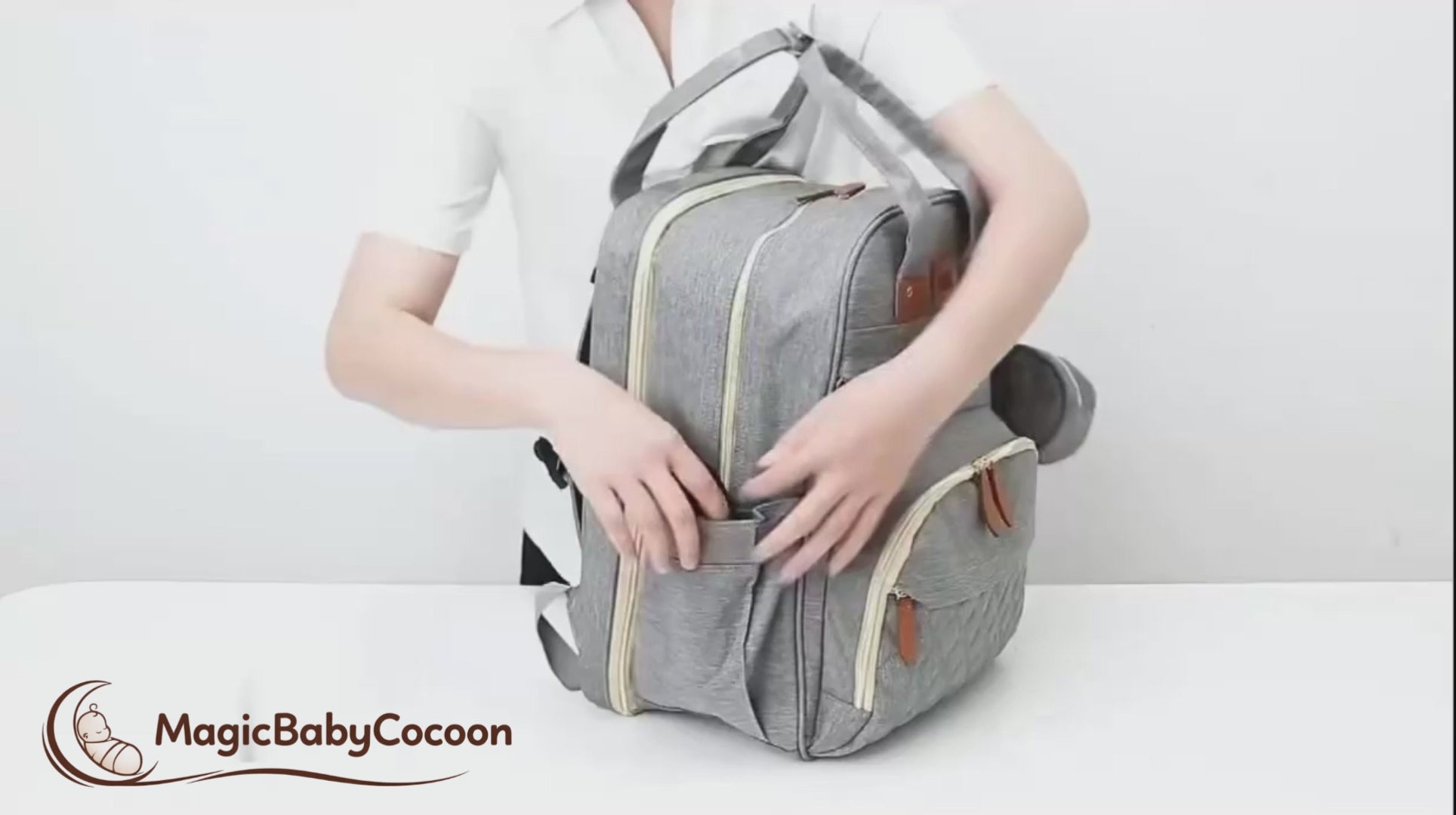 En quelques secondes, le sac se transforme en lit bébé pliable.